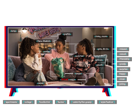 Choose THE perfect moment for your ad based on scene sentiment, entities, key topics and phrases, a best match for the viewer and brand.